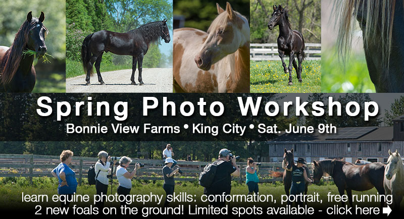 A 2 hour online course that reveals the tricks of the trade. How to get great shots of horses. Secrets behind setting up for conformation shots, lighting for portraits, stopping the action, capturing the moment and much more. Classes are limited in size. Price - $ 75.00 E-transfer to clixphoto7@gmail.com to hold your spot or click the appropriate button below. Please include your email and course date in the e-transfer message.