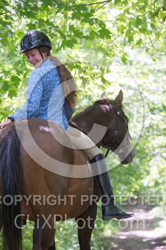 Keywords: Bonnie View Farms, Horse, Rocky Mountain Horse, Workshops, kids, girl, young girl, trail riding, summer, spring, bareback |