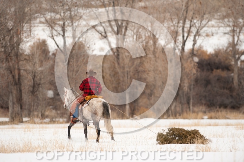 Winter Western Holiday Scene Mustang