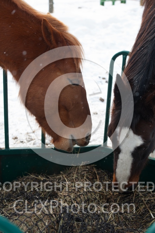 Eating hay in Winter, Feeding Hay in Winter, Hay, Slow Feeder Hay Net, Slow feeder, Winter, Winter Nutrition