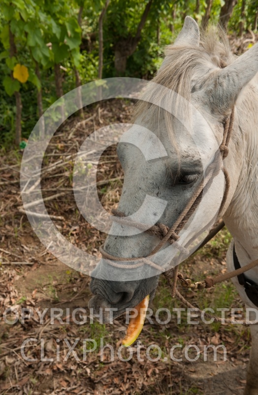 Photo Title: Alis Horse eating Cantaloupe on the Trail