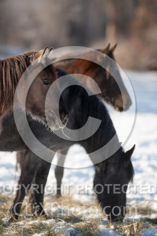 Horses Eating Hay in Winter