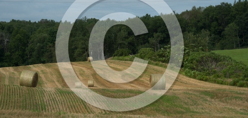 Description: Round Bales of Hay in Field |