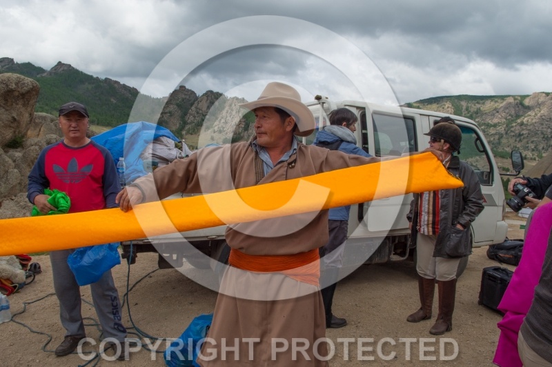 Photo Title: Baagii Preparing a Sash for A Deel