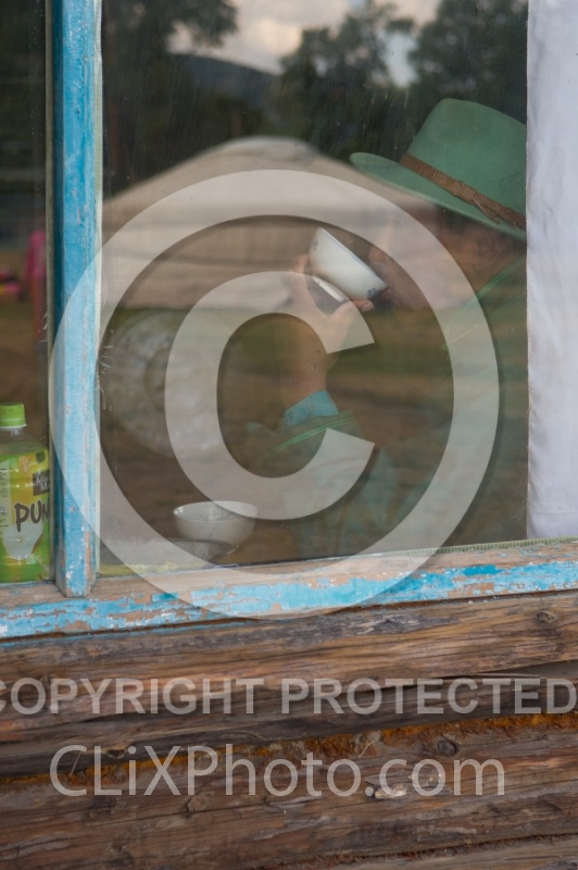 Through the Window One of Our Guides Sipping Milk Inside the Private Home