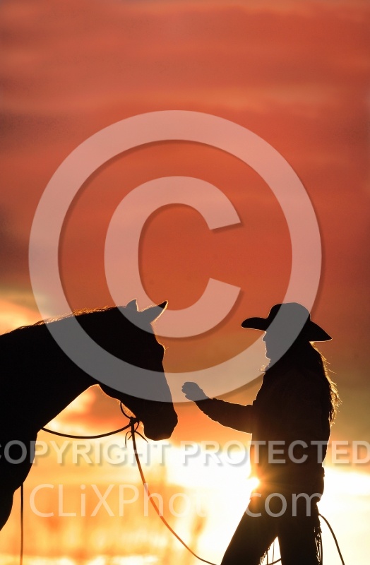 Cowgirl and Horse Silhouette
