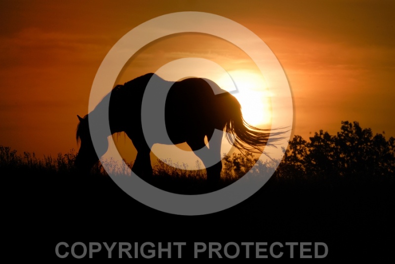 Description: Nokota Horse Silhouette at Sunset |