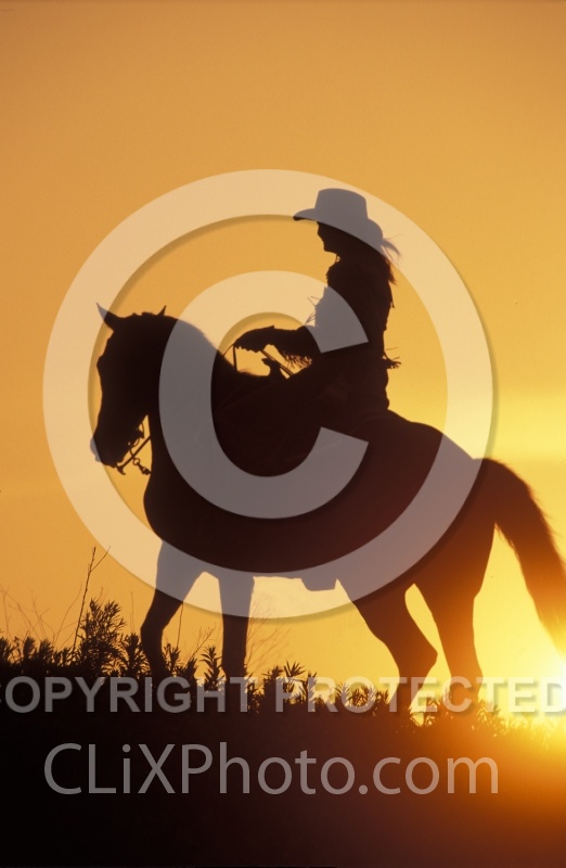 Silhoutte of Western Horse and Rider