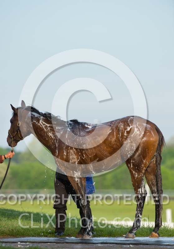 Bathing, Bathng at the Track, KY, Keeneland, Thoroughbred