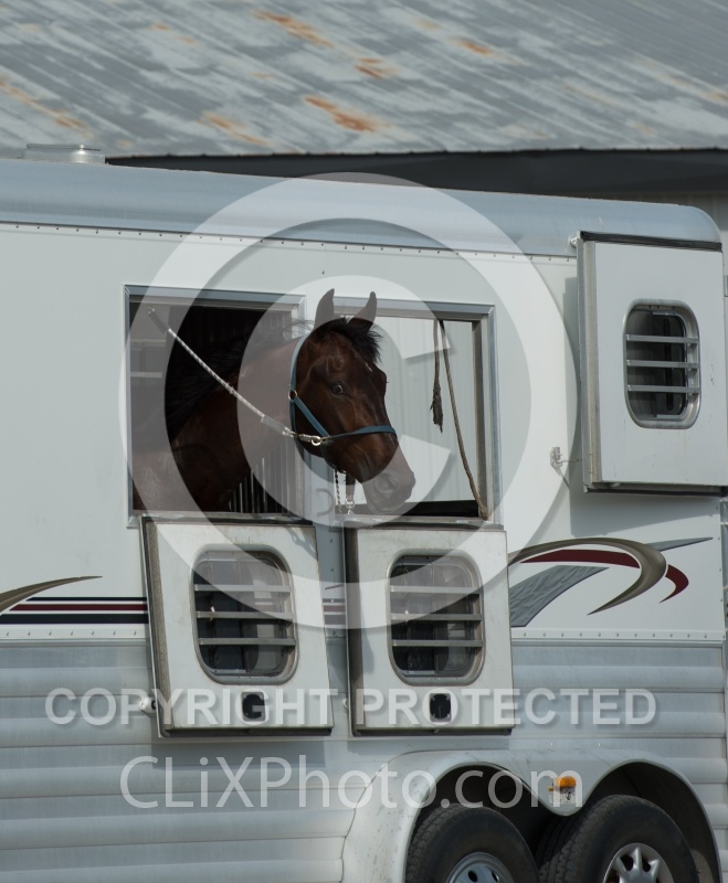 Kawartha Downs, Standardbred, Standardbred Racing, Trailering, Head out of Trailer Window, On the Road, Horse in Trailer, nervous traveller