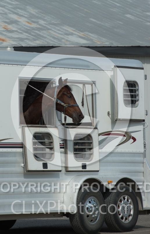Kawartha Downs, Standardbred, Standardbred Racing, Trailering, Head out of Trailer Window, On the Road, Horse in Trailer, nervous traveller