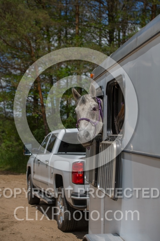 Horse in Trailer with head out window