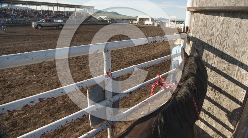 Rodeo Broncos in Chute in Polsen Montana
