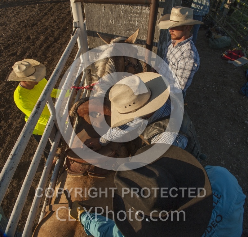 Rodeo Broncos in Chute in Polsen Montana