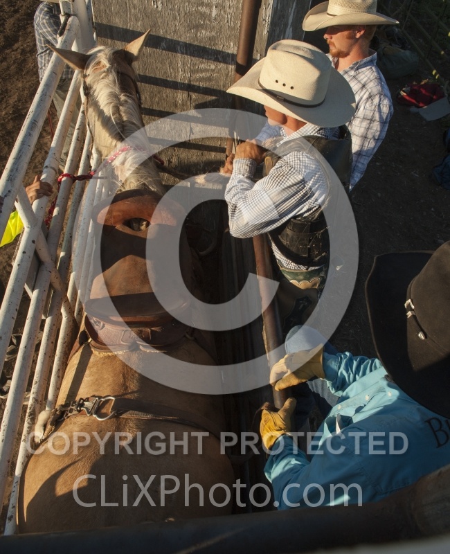 Rodeo Broncos in Chute in Polsen Montana