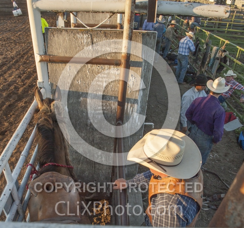 Rodeo Broncos in Chute in Polsen Montana