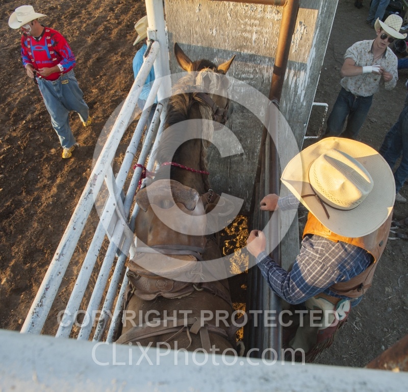 Rodeo Broncos in Chute in Polsen Montana