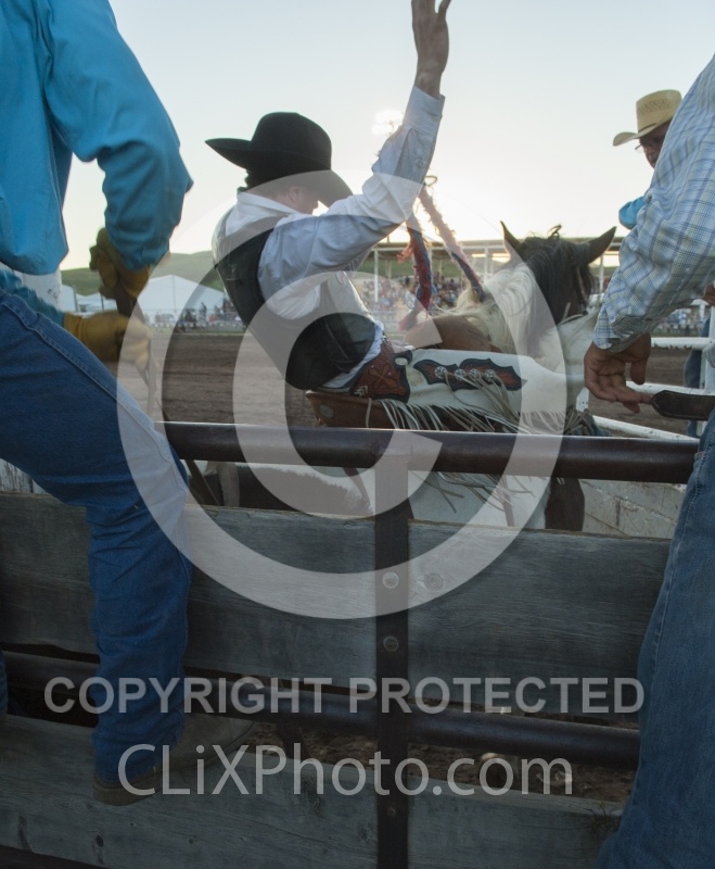 Rodeo Broncos in Chute in Polsen Montana