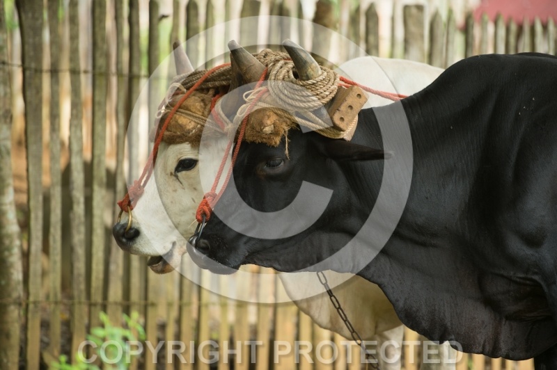 Cart pulling oxen on the small farm we visit while riding in Mil Cumbres