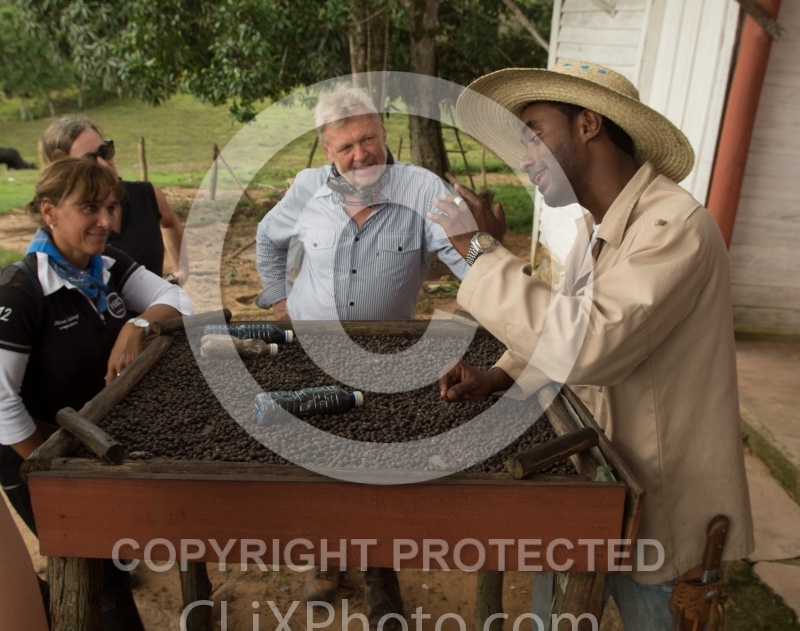 A demonstration on how coffee is dried at the farm we visit in Valle Vinales