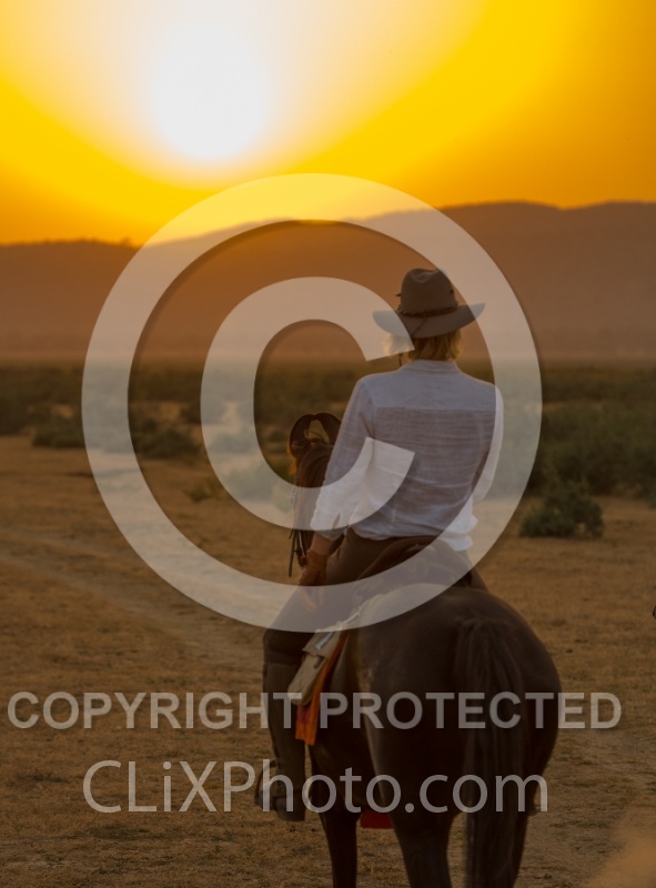 Description: Riding at sunset in India |