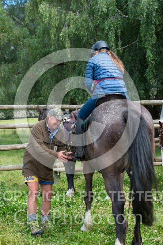 John adjusting stirrups on our first day ride at Hunter Valley Station, Land of the Long White Cloud Ride, Wild Women Expeditions and Adventure Horse Trekking New Zealand