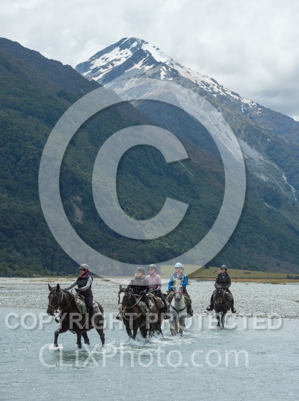A River Crossing on the Day Ride FromBoundary Hut, Wild Womens Expeditions with Adventure Horse Trekking New Zealand