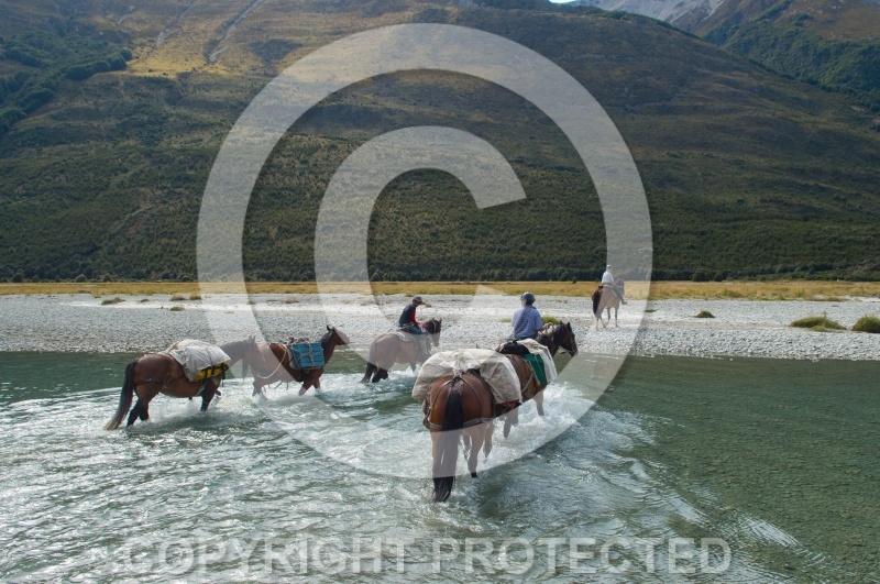 Keywords: riding vacations, horseback riding vacation, New Zealand Ride, The land of the Long White Cloud Ride, Wild Womens Expeditions, Adventure Horse Trekking new Zealand, travel, travel on horseback, water crossing, pack horses, pack horses crossing river |