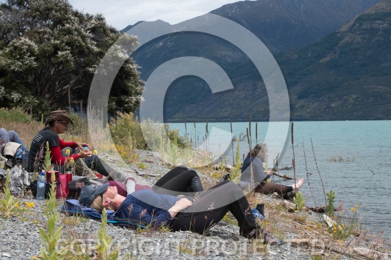 Photo Title: Lunch on a Beach at Lake Hawea on the Ride from Boundary Hut to Dingleburn Station