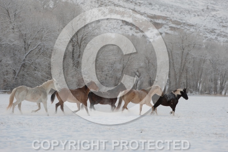 The Hideout Guest Ranch Herd Free running in the Snow in Winter