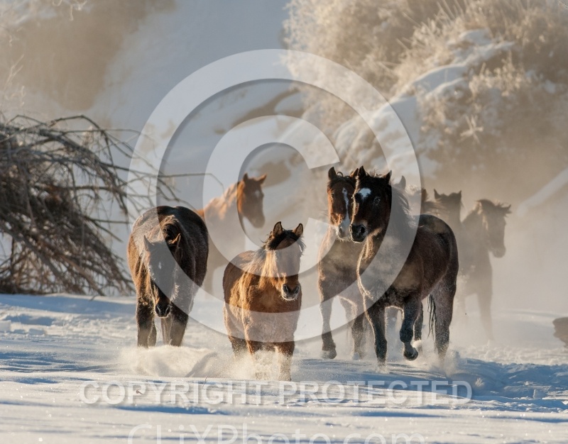 The Hideout Guest Ranch Herd Free running in the Snow in Winter