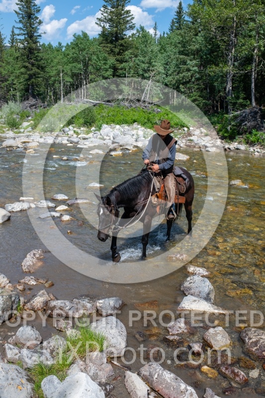 Alberta, Anchor D, Kananaskis, Lost TRail Ride 2022, Riding Vacation, River Crossing, Chad on Stretch, Trail Ride