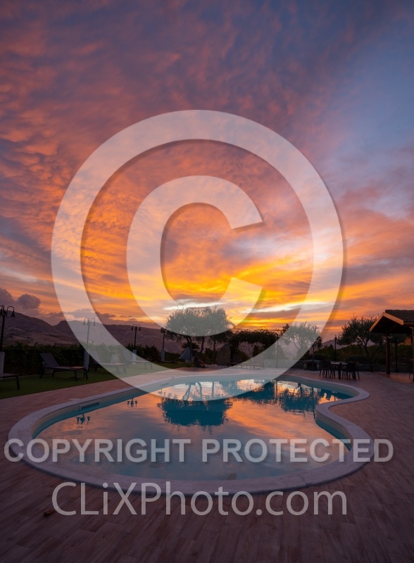 Sunrise over the pool at Villa Casale Leto