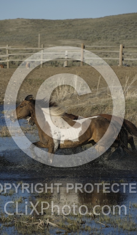 Sombrero Ranch, Horses Running Through Water, Free Running, Running Through Water, Spring, Thrush, Non Breed Specific