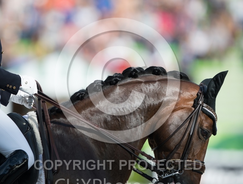 Description: Belinda Trussell and Anton Grand Prix Special WEG 2014 Normandy,France Dressage braids |