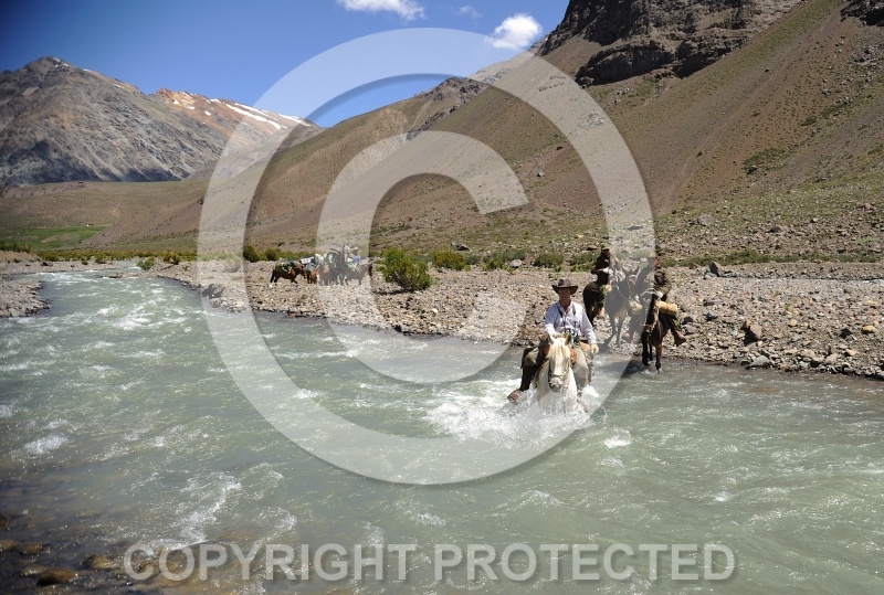 crossing the andes, water crossing, river crossing, pioneros, crossing of the andes, riding vacation, argentina, mules