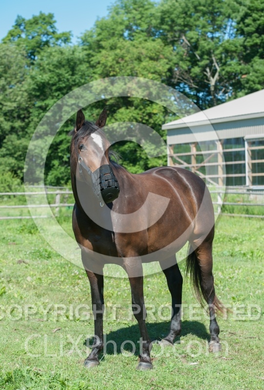 Photo Title: Overweight Horse with Grazing Muzzle