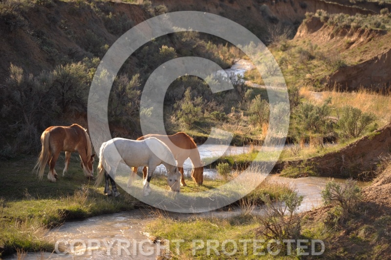 Description: Grazing Horses by River |