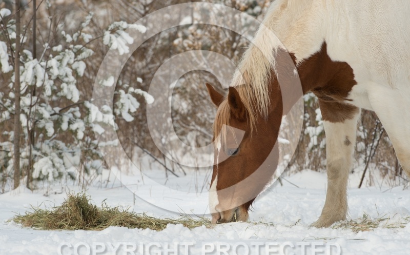 Photo Title: Horses Eating Hay in Winter