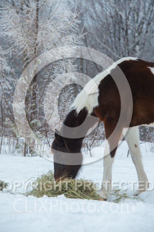 Photo Title: Horses Eating Hay in Winter