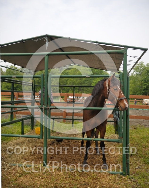 Photo Title: Lefty in His Covered Stall at Pure Country Campgrounds Portable Stalls