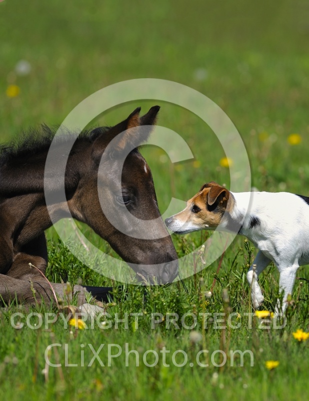 Hanoverian Foal with Jack Russel