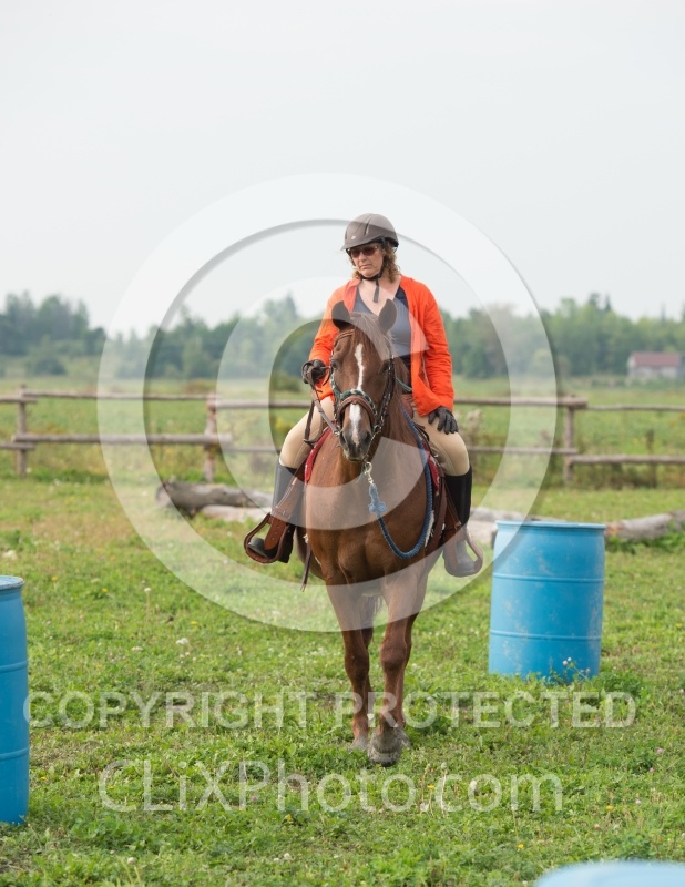 Photo Title: Cinette and Blaze Going Throgh the Barrels at Horse Country Camp