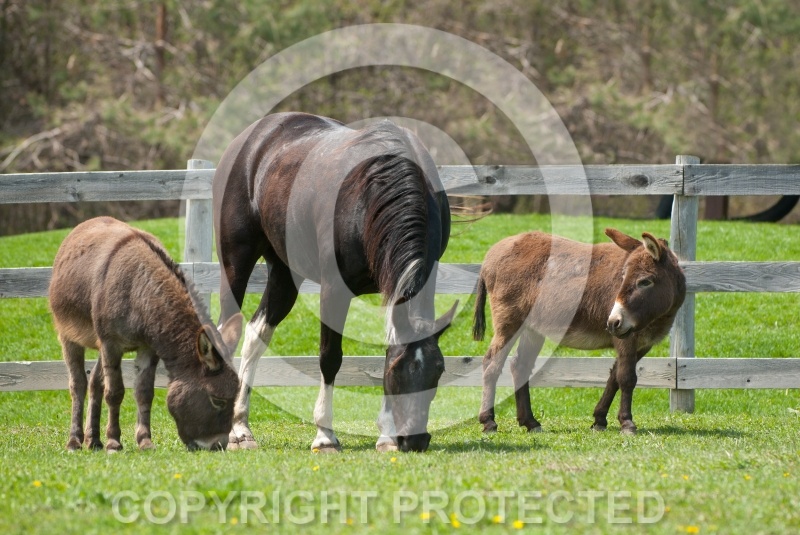 Photo Title: Donkeys and Horse in Paddock